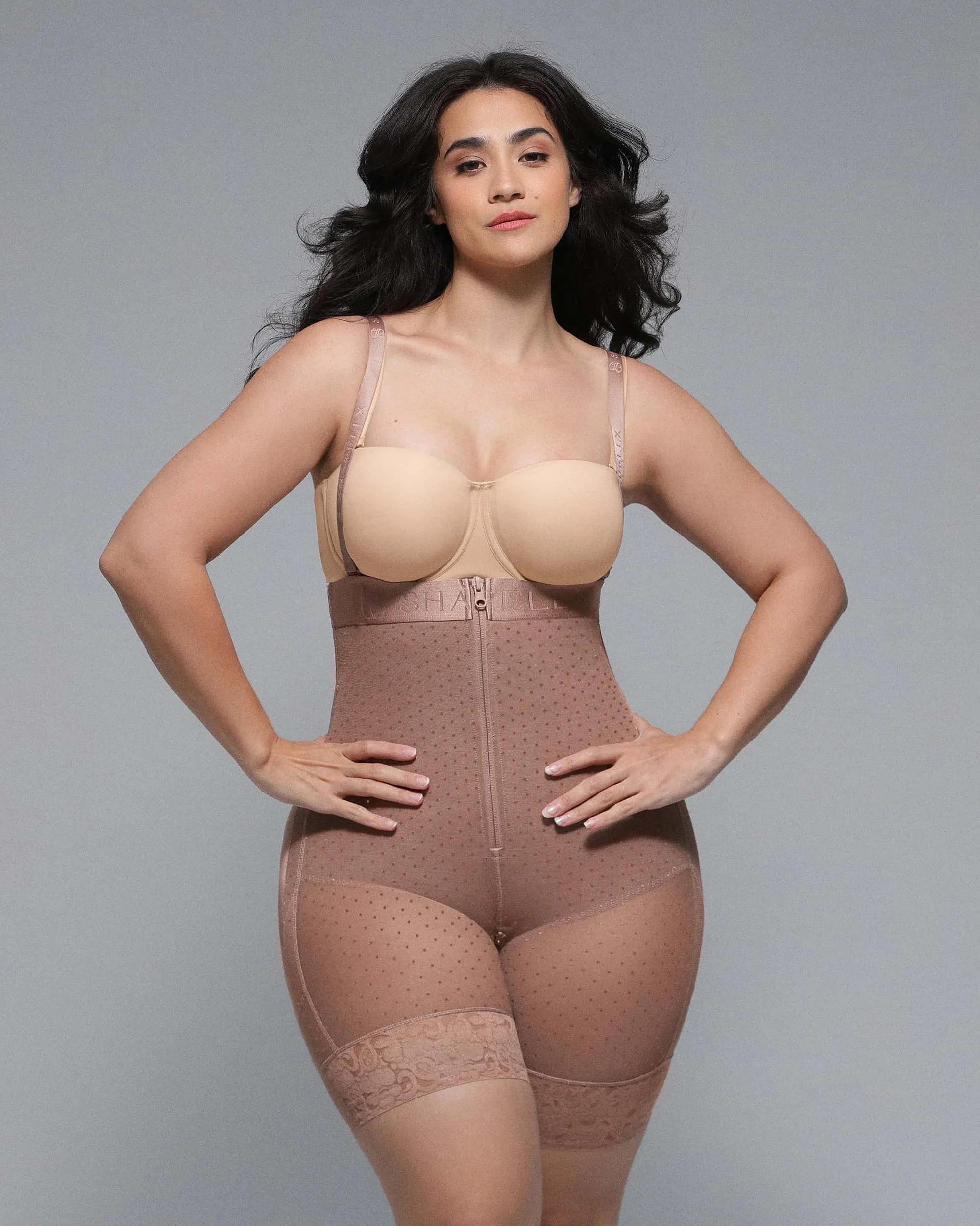 • Built-in waist cincher with adjustable hook-and-eye closure for optimal shaping.