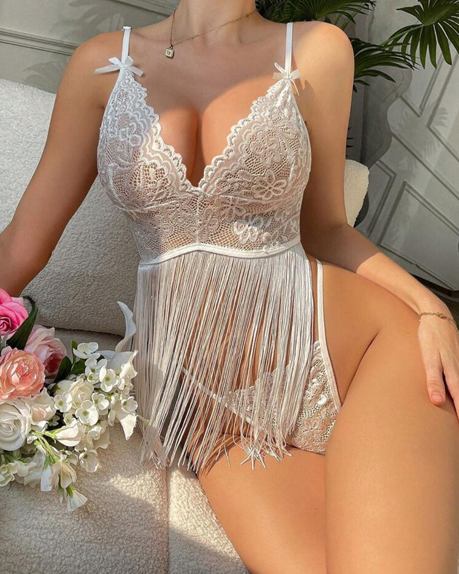 Romantic White Lace Fringe Babydoll Lingerie