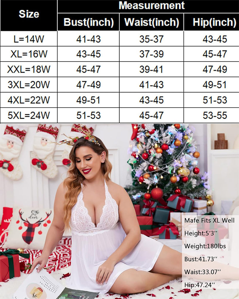 Women’s Plus Size Lace Babydoll – Mesh Chemise Sleepwear