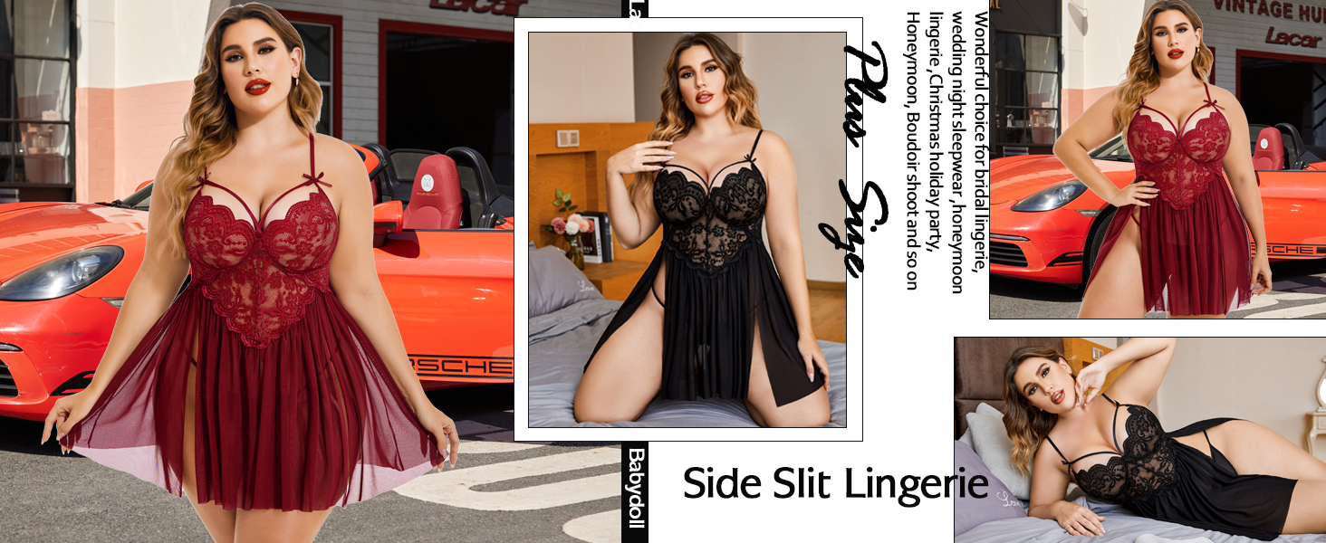 Plus Size Sexy Mesh Babydoll with Side Slit