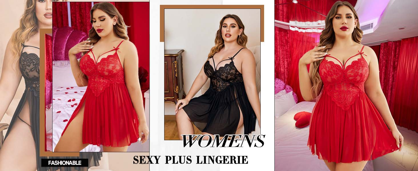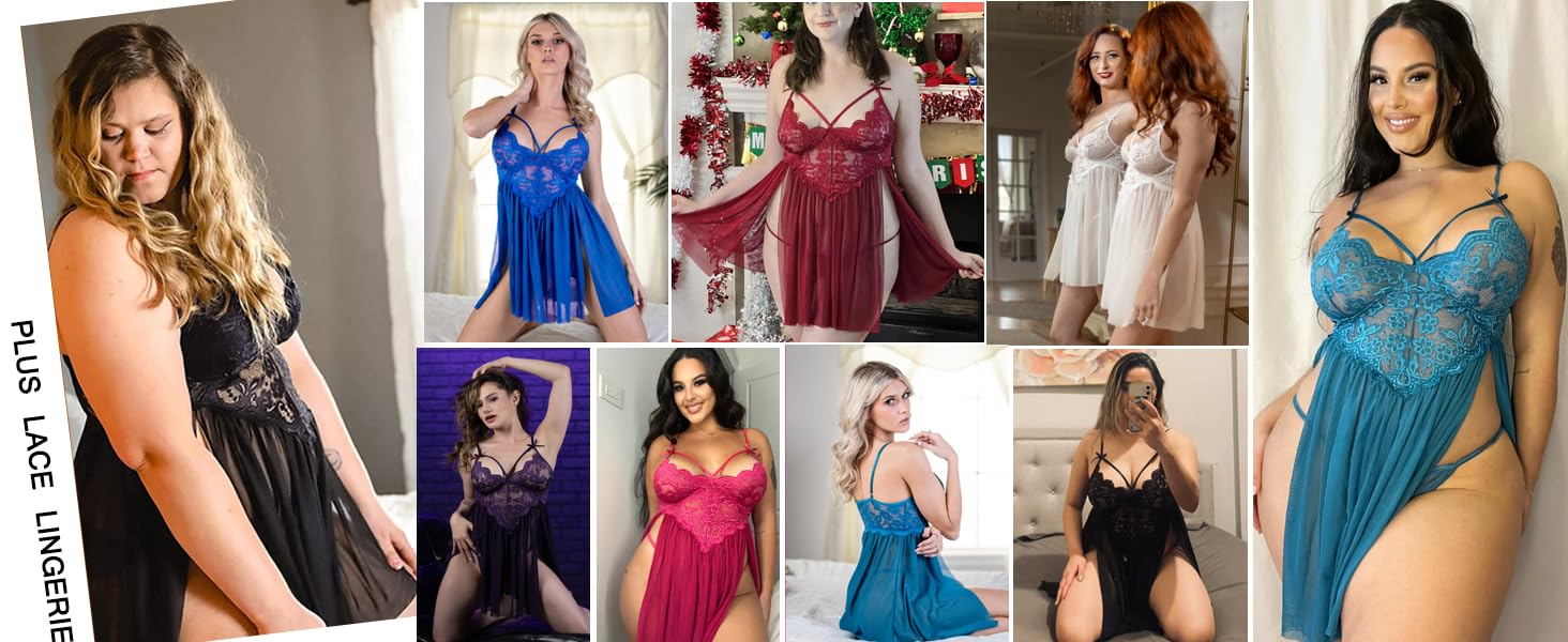 Style: Plus size babydoll lingerie for women.plus size women lace lingerie set, v neck lace chemise, sheer mesh lingerie plus size, sexy lingerie for women plus size sleepwear, lace mesh lingerie sleepwear nightie, see thru lingerie for women, plus size chemise lingerie