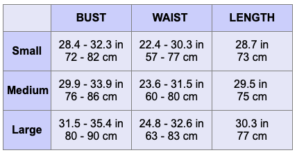 Please refer to size chart below.