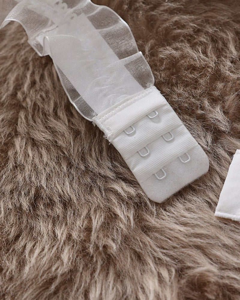 Embrace timeless femininity with our Lace Mesh Bow Tie Pearl Decoration Lingerie Set. This exquisite ensemble combines delicate lace, sheer mesh, and elegant pearl accents for a look that's both sophisticated and seductive. The charming bow tie detail and shimmering pearl embellishments add a touch of vintage glamour, making it perfect for romantic evenings or luxurious boudoir moments.