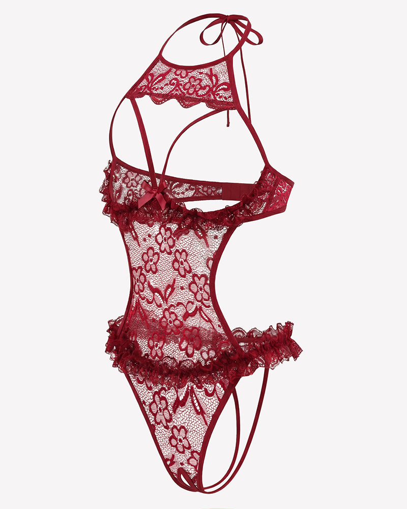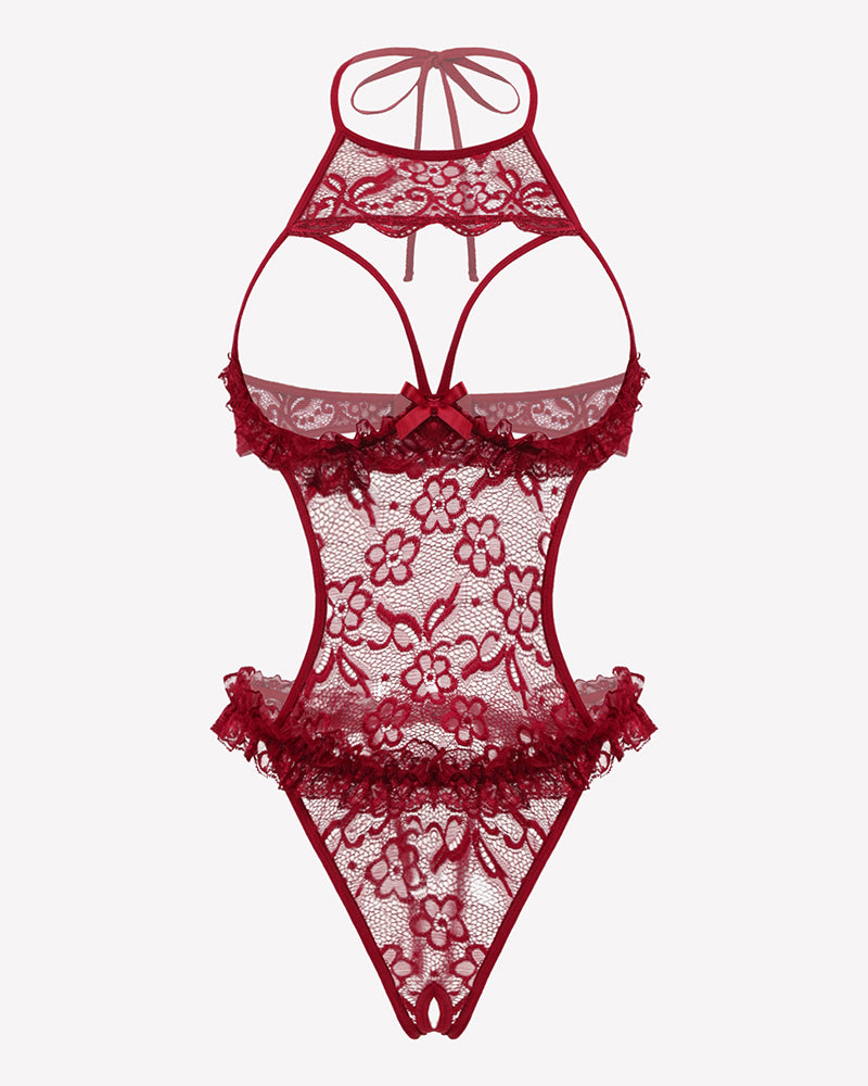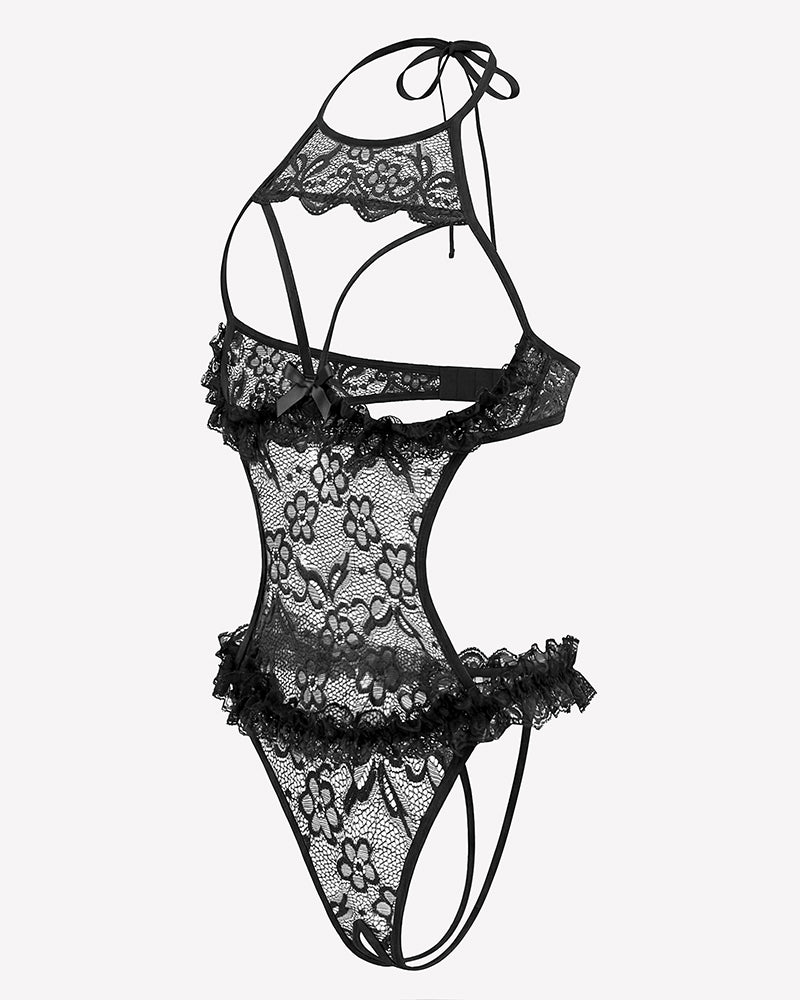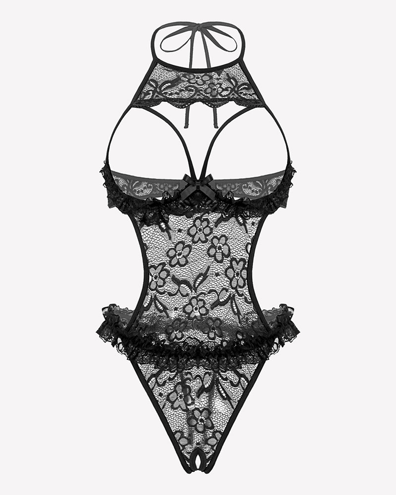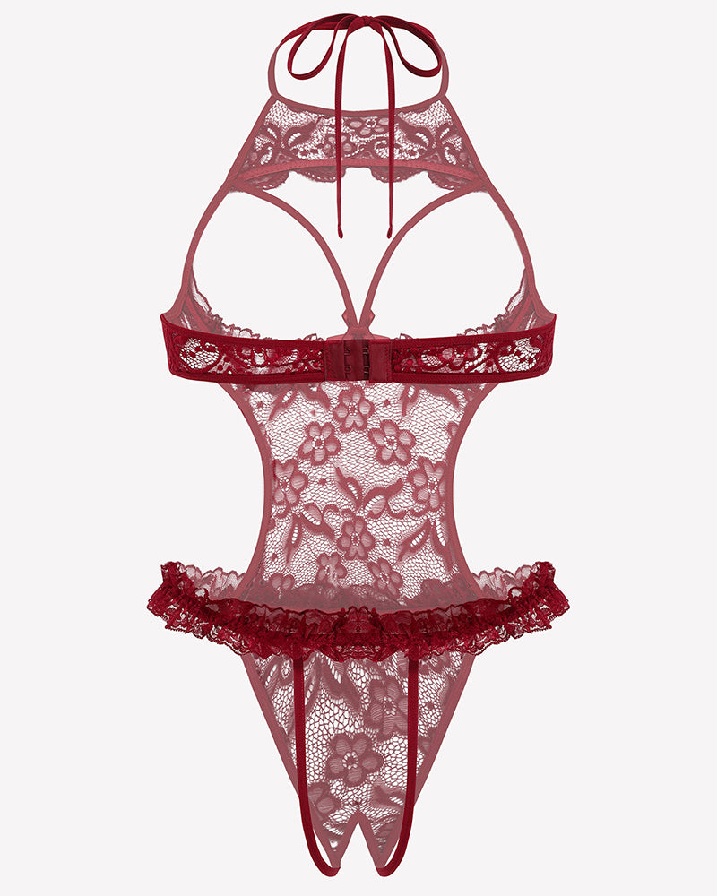 Halter Neck One Piece Teddy Bodysuit