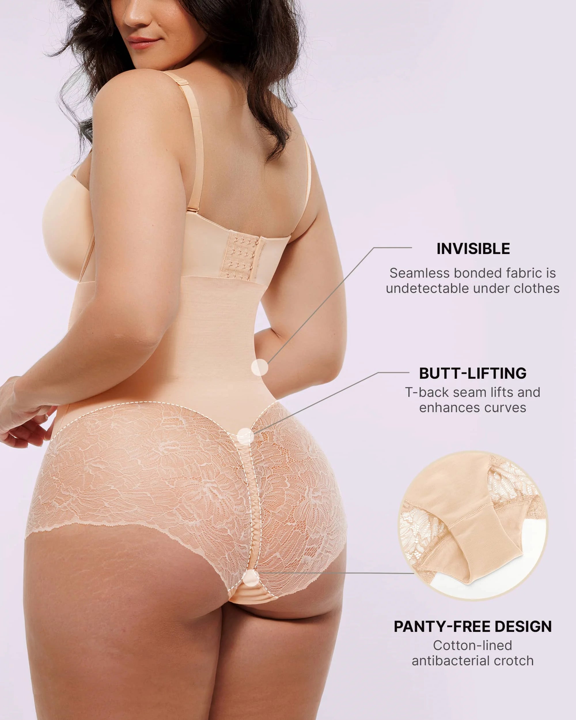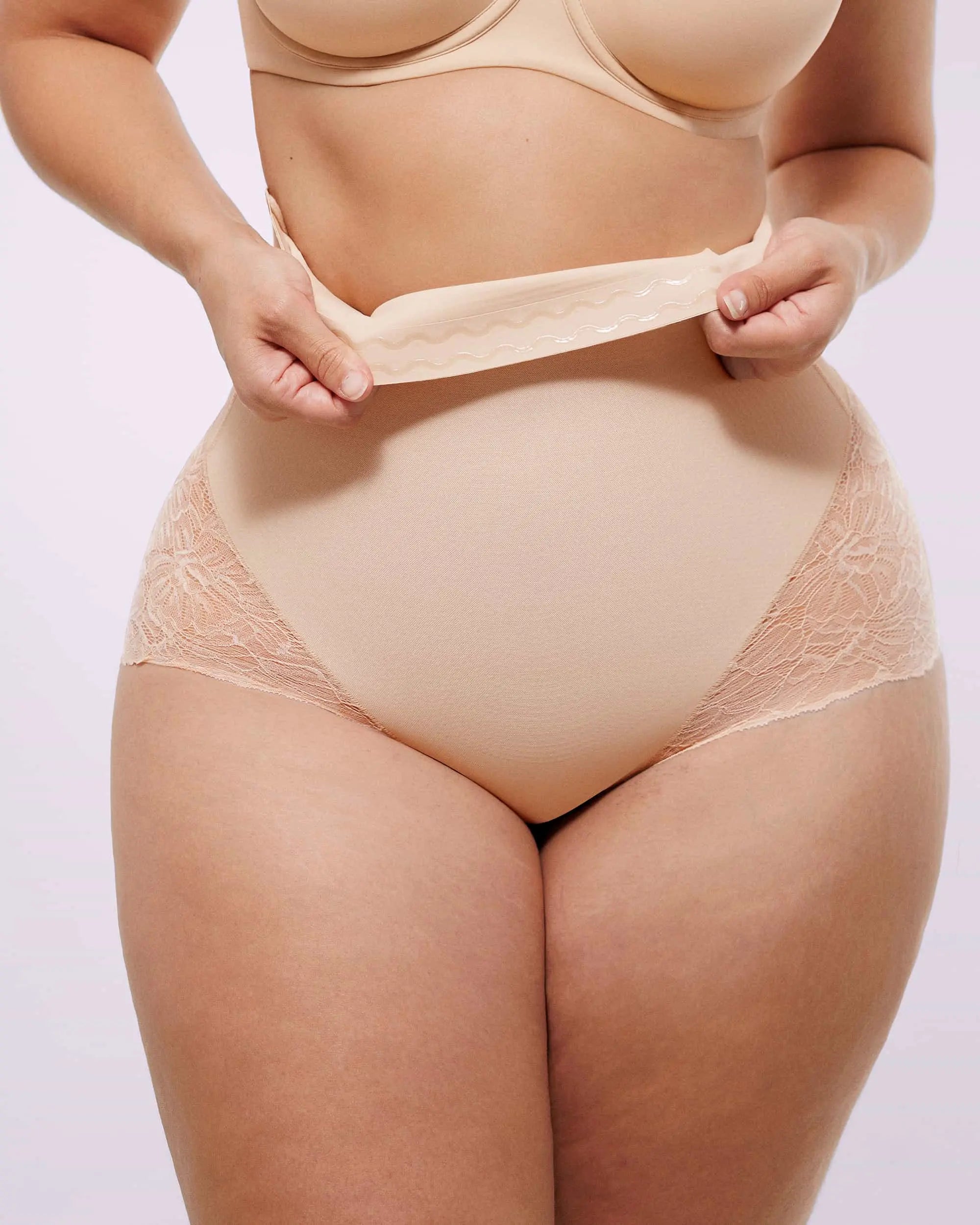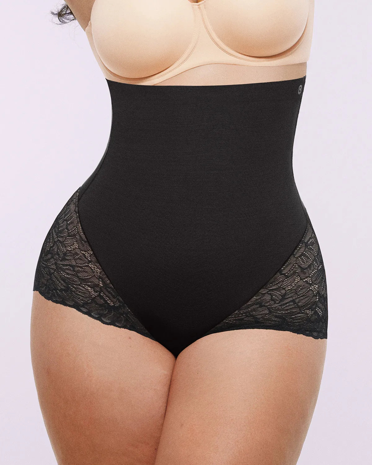 Experience premium shaping with our Bare Essentials™ MeshSmooth™ High-Waisted Sheer Lace Brief. The bonded fabric creates a second-skin smoothness that flattens your tummy and defines your waist without restriction. Sophisticated sheer lace ensures flawless coverage, while the antibacterial gusset allows underwear-free wear—perfect for both everyday and special occasions.