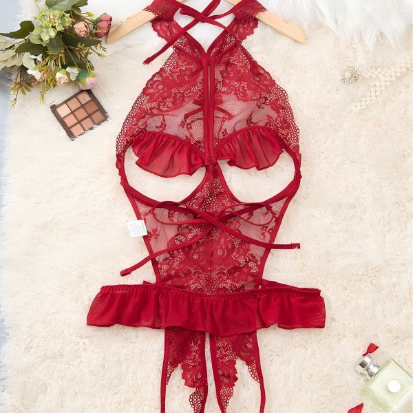 Details: Bow, Cut Out, SheerColor: Black、Red、PinkType: TeddiesBra Type: BralettesRise: Low RiseFabric: Slight StretchMaterial: LaceComposition: 85% Polyester, 15% AcrylicPockets: No