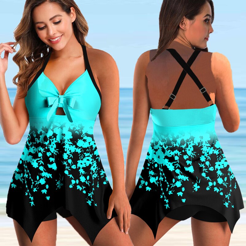 Two-Pieces Floral Print Tankini Female Plus Size Bikini Set Swimsuit Swimwear Bathing Suit Beachwear Biquini New 5XL