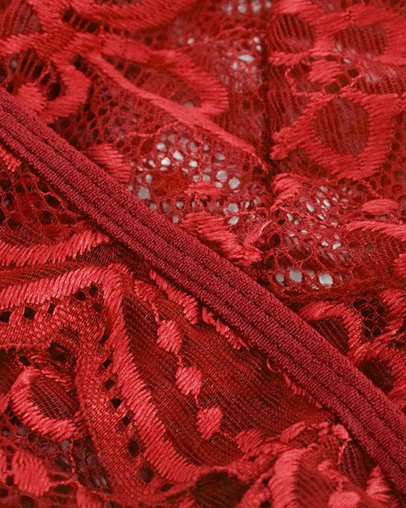 Deep V Sexy Translucent Floral Lace Cross-Back Open Crotch Design One-Piece Pajamas