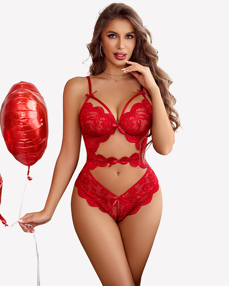 Lace Teddy Cut Out One Piece Bodysuit